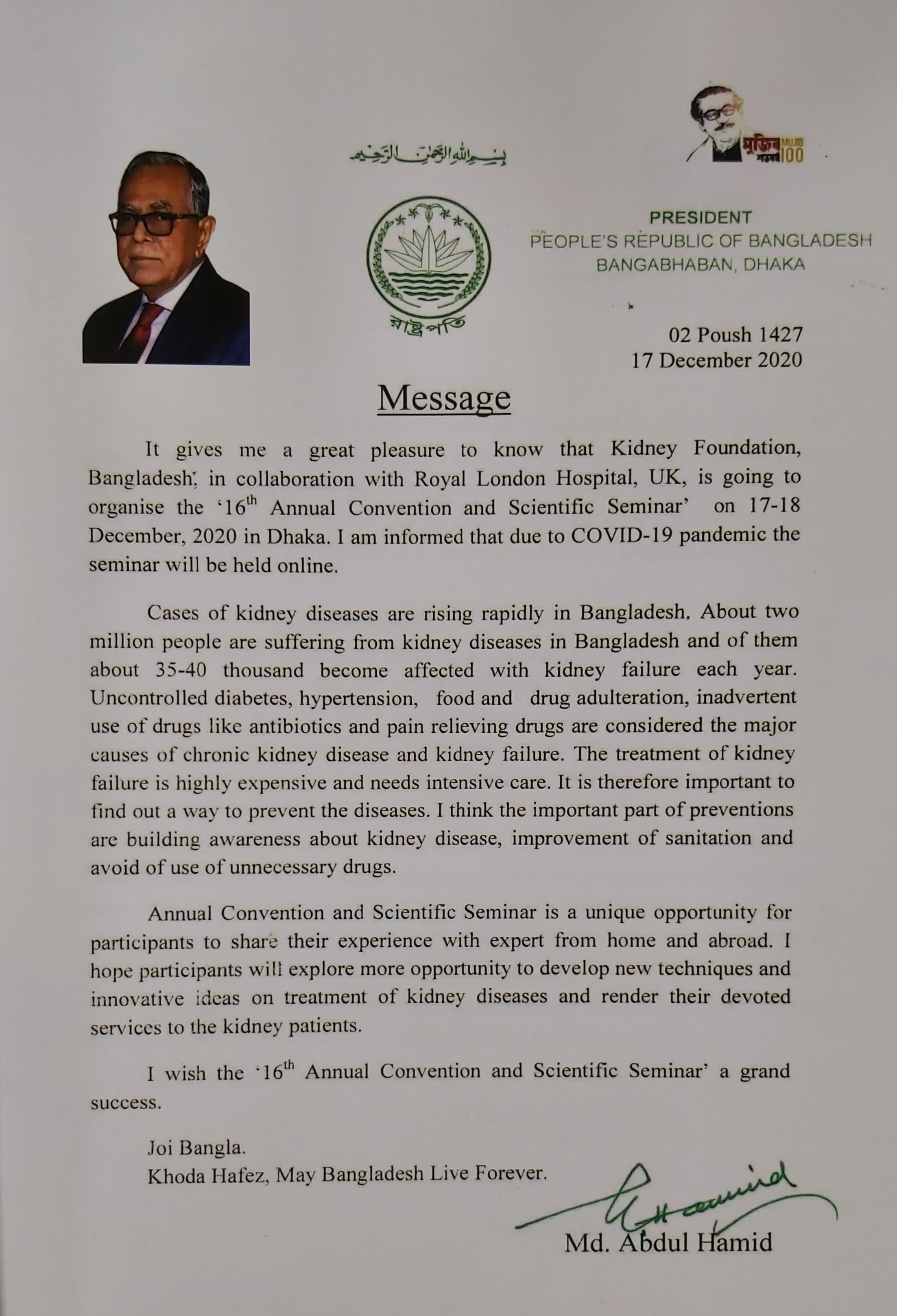 16th Annual Convention and Scientific Seminar on December 2020